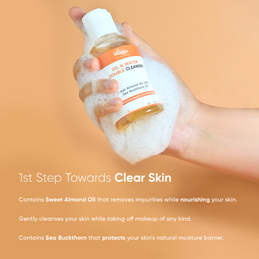 At Muggu Skincare, we have combined both the steps in 1. Check out our Oil & Water Double Face Cleanser for makeup removal.